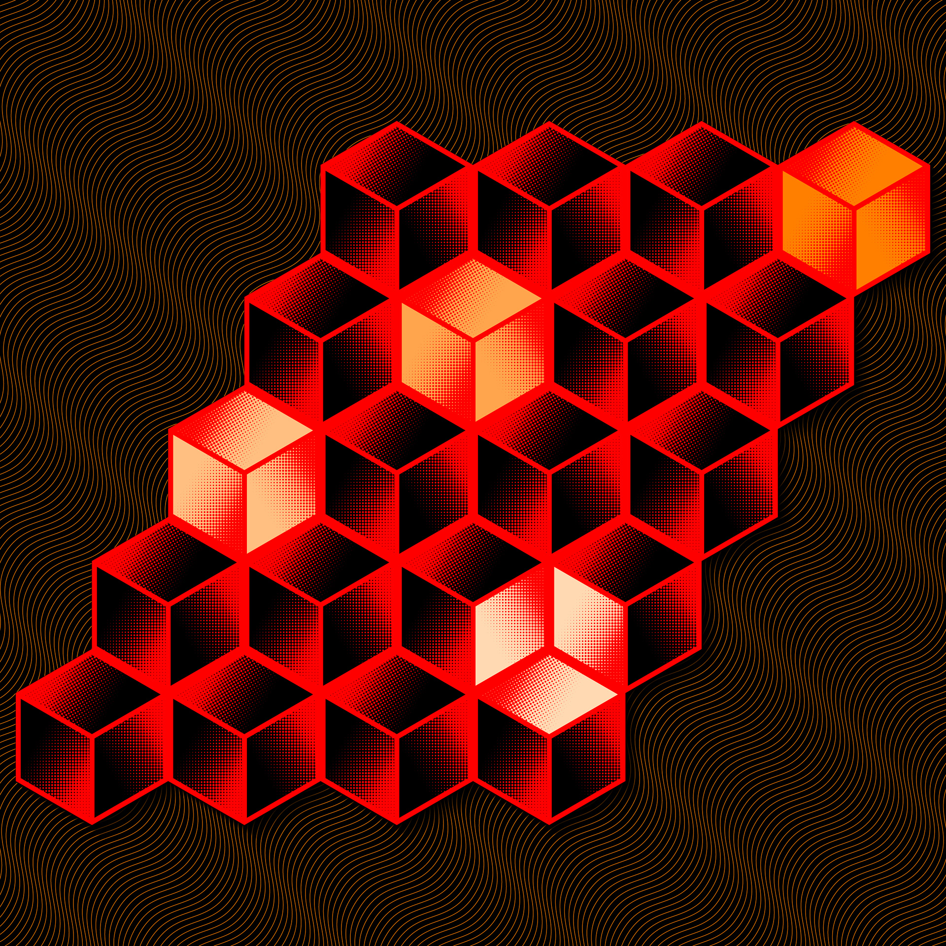 2017.8.5- RedToOrange- Lines configured as cubes+halftones+shadows