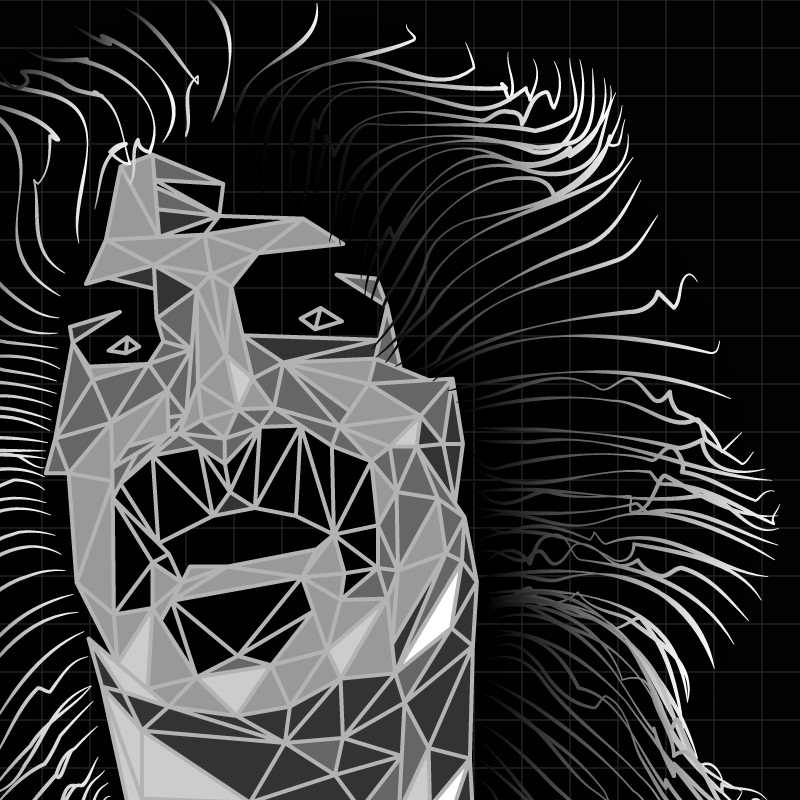 Day 98- Frank Zappa Low poly and Contour design. Zappa has such a distinct face, that I decided to go a bit more abstract on this one.